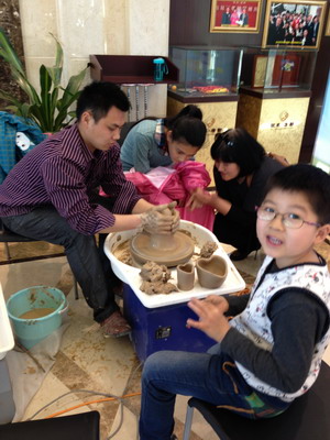 陶的藝術(shù),透著原始的魅力,散發(fā)著泥土的芬芳。4月29日走進(jìn)銀豐唐郡項(xiàng)目營(yíng)銷中心時(shí),不少客戶已在親手體驗(yàn),專業(yè)陶藝師傅手手相傳,中心點(diǎn)的尋找、捏的技術(shù)、塑性的技巧都是制做一個(gè)好的工藝品的關(guān)鍵。