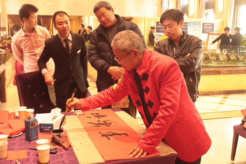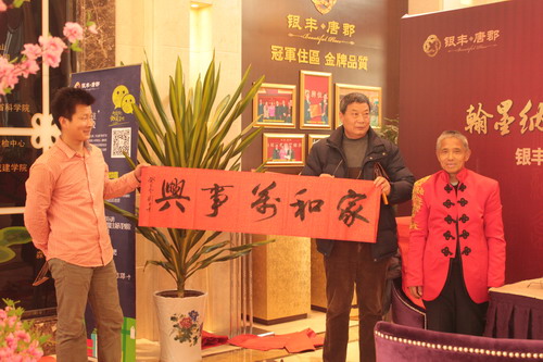 一副春聯包含萬千喜慶,一個福字傳達萬千祝福。春節將至,為回饋廣大客戶朋友一年以來的厚愛與支持,銀豐·唐郡項目營銷中心于2014年1月11日-1月12日,1月17日-1月18日在1月份連續兩周末舉辦了銀豐·唐郡項目第二屆民俗文化藝術節,特別邀請山東省書法家協會的書法名家到現場為廣大客戶朋友潑墨揮毫、撰寫春聯,同時向客戶朋友贈送精美的福字,以此向客戶朋友敬獻新春祝福。