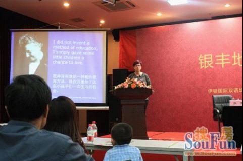 簽約儀式上除了向廣大業(yè)主及客戶詳細(xì)介紹了銀豐花園伊頓雙語(yǔ)幼兒園幼兒園辦學(xué)規(guī)劃,優(yōu)異的辦學(xué)軟硬件,以及伊頓雙語(yǔ)幼兒園雄厚的師資力量和先進(jìn)的辦學(xué)理念外,還邀請(qǐng)了Rosemary女士進(jìn)行蒙氏早教專場(chǎng)講座,Rosemary女士運(yùn)用國(guó)際最前沿的互動(dòng)教學(xué)模式,與現(xiàn)場(chǎng)業(yè)主家長(zhǎng)互動(dòng),解答孩子的幼教問(wèn)題。專家幽默生動(dòng)的講座,博得了現(xiàn)場(chǎng)觀眾陣陣熱烈的掌聲,不少業(yè)主都表示自己受益匪淺,同時(shí)也表示希望銀豐花園伊頓雙語(yǔ)幼兒園能夠早日建成投入使用。