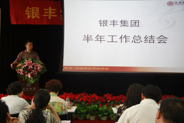 2012年7月21日上午,銀豐集團2012年半年工作會議在銀豐大廈11樓多功能廳舉行。此次會議的主要任務是總結銀豐集團2012年上半年的工作,安排部署下半年的各項任務,動員集團上下明確方向,振奮精神,全面完成全年發展目標。