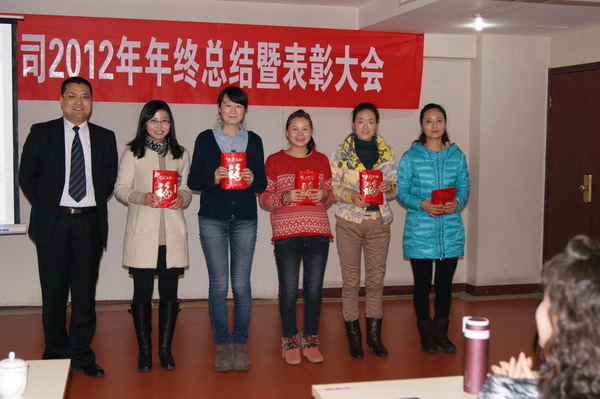 1月4日馬秀峰老師就臍帶血基礎知識以及臨床應用知識為大家做了細致的講解及交流。1月5日的年度總結(jié)暨表彰會上,各部門匯報了2012年的工作重點、存在的問題和2013年的工作思路及工作計劃。會后公司對2012年的優(yōu)秀員工、優(yōu)秀團隊以及優(yōu)秀管理者進行了表彰。