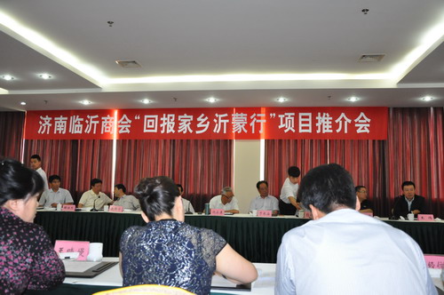 2013年6月15日上午,濟南臨沂商會“回報家鄉沂蒙行”項目推介會在臨沂頤正園賓館召開。濟南臨沂商會名譽會長、原副省長、王裕晏,濟南臨沂商會會長凌沛學,常務副會長、銀豐集團董事長王偉等參加了會議,市委副書記李峰,市政協副主席王曉嫚及市政府相關部門代表出席。
