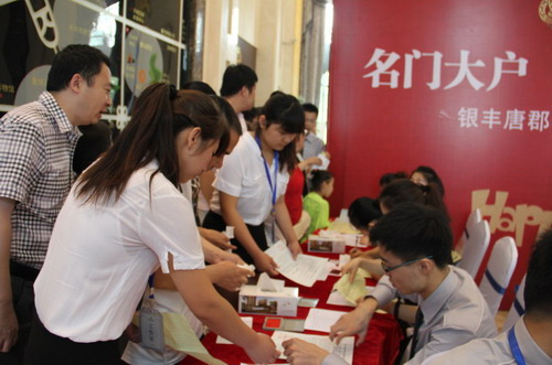 當天上午9時10分正式開盤,客戶分組進行選房,現(xiàn)場不斷傳來成交的唱號聲、祝賀聲,隨著房源的不斷減少,熱銷態(tài)勢愈演愈烈。開盤現(xiàn)場的購房人群中有不少是三口之家,王先生一家說:“我們看中的是銀豐地產(chǎn)品質的信賴,銀豐·唐郡項目的規(guī)劃注重人居與環(huán)境的融合,還引入很多綠色生態(tài)技術,低碳環(huán)保的理念,將來是一個低碳生態(tài)社區(qū),這不止是一個承諾,更是對全新生活模式的宣言。”充分表明了大家對銀豐地產(chǎn)品牌實力的認可和對銀豐物業(yè)的認同與期待。