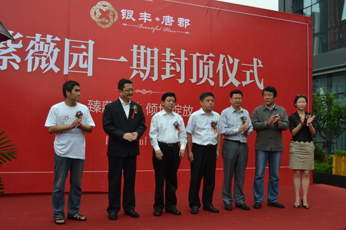 2013年6月9日銀豐唐郡項目營銷中心鞭炮齊鳴,禮花綻放,精彩紛呈的舞龍舞獅表演,濟南東部最受人矚目的熱點樓盤項目--銀豐唐郡項目2號地塊(紫薇園地塊)一期舉行封頂儀式。歷城區(qū)委常委、常務(wù)副區(qū)長孫德順,歷城區(qū)唐冶街道黨工委書記、唐冶新區(qū)管委會常務(wù)副主任尹少華,銀豐集團副總裁劉旭,銀豐房地產(chǎn)開發(fā)有限公司總經(jīng)理王彤,濟南銀豐唐冶房地產(chǎn)開發(fā)有限公司總經(jīng)理李美萱,施工方代表、天元建設(shè)集團有限公司副總經(jīng)理聶兵,業(yè)主代表、濟鋼集團有限公司劉增強等出席了此次盛會。喜慶而熱烈的封頂儀式現(xiàn)場,印證了在激烈的市場環(huán)境下,銀豐唐郡項目的熱銷業(yè)績以及領(lǐng)舞濟南區(qū)域品質(zhì)標(biāo)桿的品牌口碑,也預(yù)示了唐冶片區(qū)乃至整個濟南東部蓬勃發(fā)展的勃勃生機。