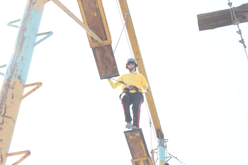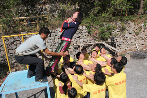 拓展訓(xùn)練期間,各隊分別進行了“空中單杠”、“天梯”、“斷橋”、“高空相依” “盲人方陣”、“團隊戰(zhàn)鼓”、“圣塔”、“背摔”“蛟龍出海”等拓展項目。各隊成員充分發(fā)揮自己最大的潛能,尤其在高空類項目中敢于挑戰(zhàn)自我、超越自我,配合團隊共同完成了任務(wù)。在團體比賽中,“團隊戰(zhàn)鼓”的成績打破了拓展訓(xùn)練營內(nèi)保持五年的記錄,顛球數(shù)目高達1211個。