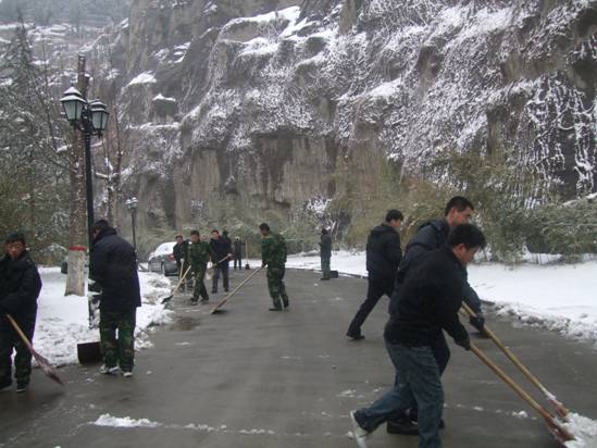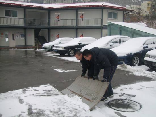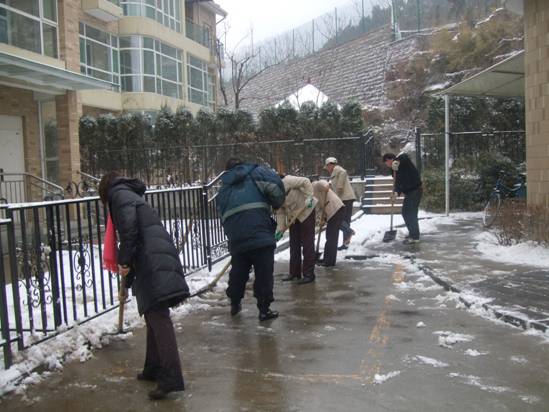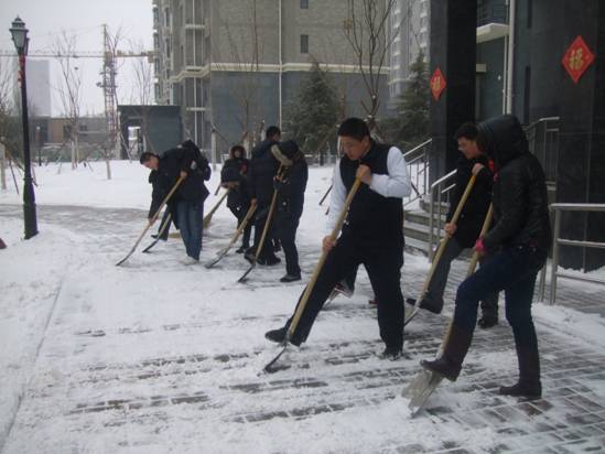 2011年2月27日,一場春雪再次飄落,在進一步凈化空氣、緩解旱情的同時,也給業(yè)主出行帶來了不便。為了保證道路通行順暢、小區(qū)業(yè)主能夠安全的出行,銀豐物業(yè)的全體員工,從凌晨6點開始,冒著嚴(yán)寒清掃路面積雪,極大地方便了小區(qū)居民早晨出行和車輛通行。