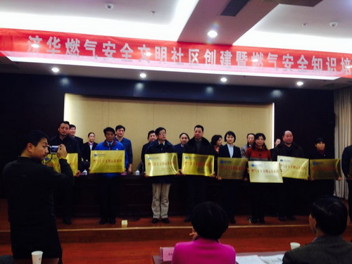 2014年1月15日上午,濟(jì)南市文明辦、市安監(jiān)局、市政公用事業(yè)局、濟(jì)華燃?xì)饴?lián)合召開“燃?xì)獍踩拿魃鐓^(qū)”表彰大會(huì)。