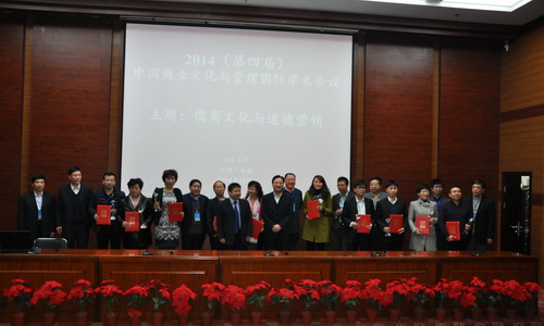 本次學術會議主題為“儒商文化與道德營銷”。山東大學商業文化與管理研究中心經過三年研究,利用科學方法,深入探討儒商文化特征、測量維度與評價方法,研制了中國儒商數據庫,設計出了儒商評價指數,并通過采集企業表現、媒體反映、顧客反映數據,對2014中國儒商企業進行了綜合評價,并向彭秀玲等十位企業家頒發2014中國儒商風范人物證書。