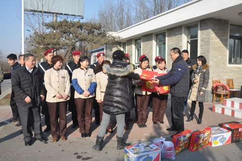 2016年2月7日,農(nóng)歷除夕,上午8:00,銀豐集團副總裁劉旭、王彤,總裁助理湯莉及銀豐地產(chǎn)集團副總裁李美萱、總裁助理米文斌等一行慰問了各公司春節(jié)期間仍在堅守崗位的一線員工。