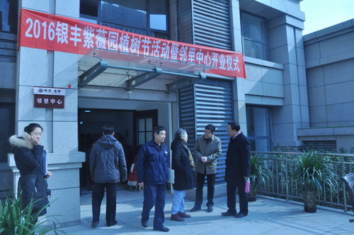 2016年3月12日,銀豐物業第二管理中心總經理陶承東與業主代表一起為銀豐唐郡紫薇園 “鄰里中心”揭牌。在陣陣掌聲中,銀豐唐郡紫薇園 “鄰里中心”正式啟動。
