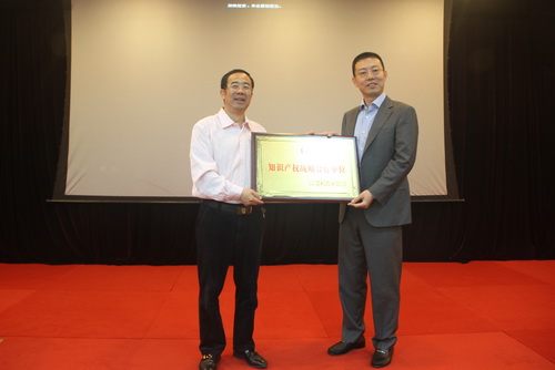 會上,王永江董事長為銀豐集團董事長王偉頒發知識產權戰略合作單位牌匾。雙方將建立長期友好合作,謀求共贏空間。
