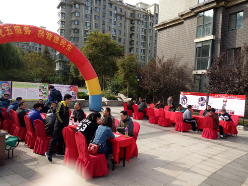 活動當天,市局參加活動各單位及各區房管局房管維修熱線的工作人員向參加活動的業主發放宣傳材料,進行政策宣傳和解答,接受群眾的咨詢,發放明白紙等政策宣傳材料。房管局丁寧書記、張恒志副局長、李剛副局長等領導親臨現場接受社區業主的咨詢及建議,銀豐地產集團有限公司總裁趙培勇、銀豐物業管理有限公司董事長米文斌、銀豐物業一中心總經理沈洪祥、副總經理韓小華等相關領導陪同參加了宣傳活動。