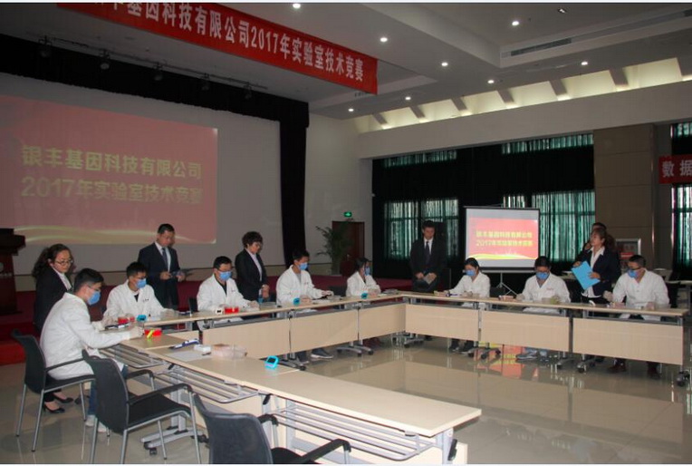 2017年3月29日,銀豐基因第二屆實驗室技術競賽決賽,在銀豐生物集團十一樓多功能廳舉行,銀豐生物集團人力資源部總監宋健、綜合管理部行政經理許心悅,銀豐基因科技有限公司副總經理段文元、總經理助理楊旭東、財務部經理王征蒞臨比賽現場。