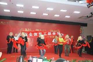 熱歌勁舞,春意融融。整臺(tái)聯(lián)歡會(huì)氣勢(shì)磅礴、高潮迭起,編排新穎,格調(diào)清新,融聲樂、舞蹈、曲藝等多種藝術(shù)形式于一體,既民族特色濃郁,又時(shí)代氣息鮮明,聯(lián)歡會(huì)不論是從構(gòu)思還是到表演,都充滿了銀豐房地產(chǎn)獨(dú)特的企業(yè)文化特色,為廣大員工奉獻(xiàn)上一道精美的藝術(shù)大餐。聯(lián)歡會(huì)中間穿插進(jìn)行的員工抽獎(jiǎng)活動(dòng),增進(jìn)了員工互動(dòng)與融合,營(yíng)造了歡樂祥和的節(jié)日氣氛。聯(lián)歡會(huì)結(jié)束后,集團(tuán)公司領(lǐng)導(dǎo)與全體員工共進(jìn)晚餐,同賀新春。