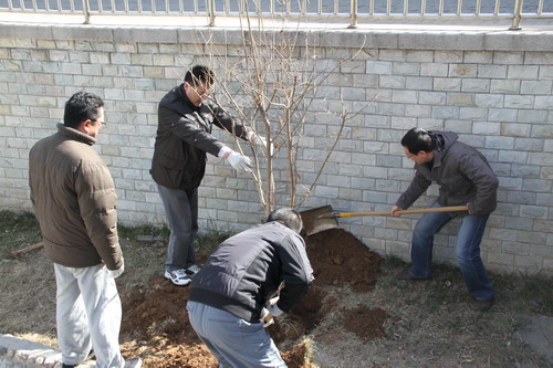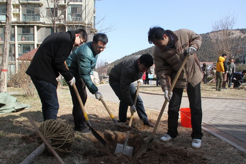 陽春三月,草長鶯飛間,冬天的寒意還未褪盡,春天帶著綠色的氣息走來。2012年3月11日上午,為迎接第34個(gè)全民義務(wù)植樹節(jié),銀豐集團(tuán)各下屬公司以及銀豐山莊部分熱心業(yè)主,近130余人,在銀豐山莊小區(qū)開展了以“綠色地球 綠色家園”為主題的環(huán)保植樹行活動(dòng),本次活動(dòng)旨在讓大家親自動(dòng)手實(shí)踐,體會(huì)勞動(dòng)的喜悅,增強(qiáng)團(tuán)隊(duì)協(xié)作能力,將環(huán)保理念宣傳到個(gè)人,同時(shí)為綠化銀豐的小區(qū)環(huán)境盡一份自己的力量。