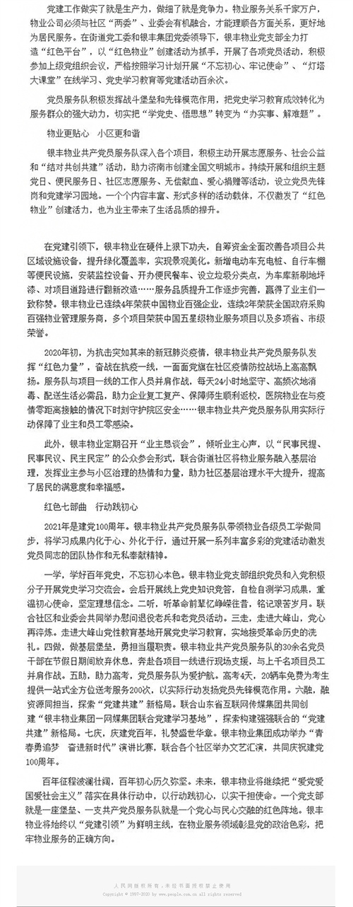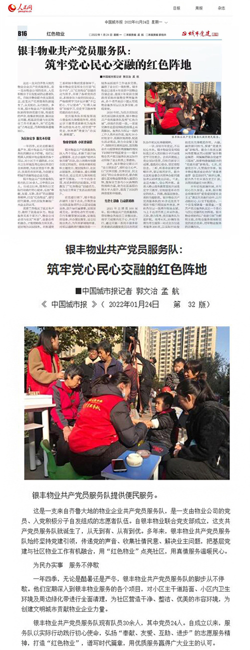 人民網:銀豐物業共產黨員服務隊 筑牢黨心民心交融的紅色陣地