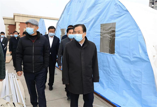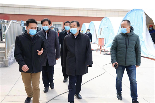 孫立成一行察看了正在搭建的氣膜方艙實驗室情況,聽取項目負責人的工作介紹,詳細詢問了解核酸檢測實驗室建設、設備配置、人員配備等情況。