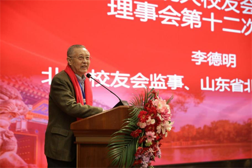 北大校友會監事、山東校友會顧問李德明傳達北京大學校友會第九屆常務理事會第十二次會議精神。