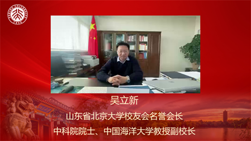 山東北大校友會名譽會長、中科院院士、中國海洋大學副校長吳立新院士因工作原因未能參會,也發來情真意切的視頻賀詞。吳立新給校友們送上新春祝福,對校友會的辛勤付出和杰出貢獻表示感謝,并鼓勵大家弘揚無私奉獻的北大精神,為中華民族的偉大復興貢獻一份力量。