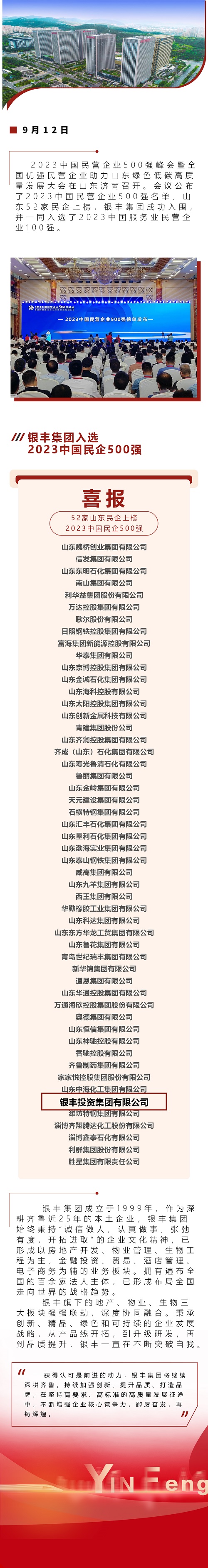銀豐集團(tuán)入選2023中國(guó)民營(yíng)企業(yè)500強(qiáng)